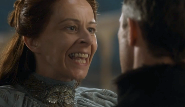 La puntata si apre con l’incoronazione di Tommen (infatti in lingua originale si intitola “First Of His Name” ma in Italia, si sa, i titolisti sono fantasiosi) e quando il sacerdote recita “e possa la vecchia che conosce il destino di ogni uomo, mostrargli il cammino da percorrere”, io penso “ma sì, affidatelo alla vecchia che già ha fatto un buon lavoro col fratellino schizofrenico”. Intanto il re ha occhi solo per le tette di Margaery, ma la mamma è sempre la mamma, e infatti Cersei, prima si mette sulla traiettoria visiva, poi prende in pugno la situazione e va a fare la simpaticona con la vedova nera. Io se fossi nella giovane Tyrell non mi fiderei nemmeno per un istante, ma Margaery è già oltre.