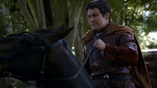 A proposito di deficienti, ecco Pod che cerca di cavalcare accanto a Brienne che si dirige al Castello Nero convinta di trovare Sansa.