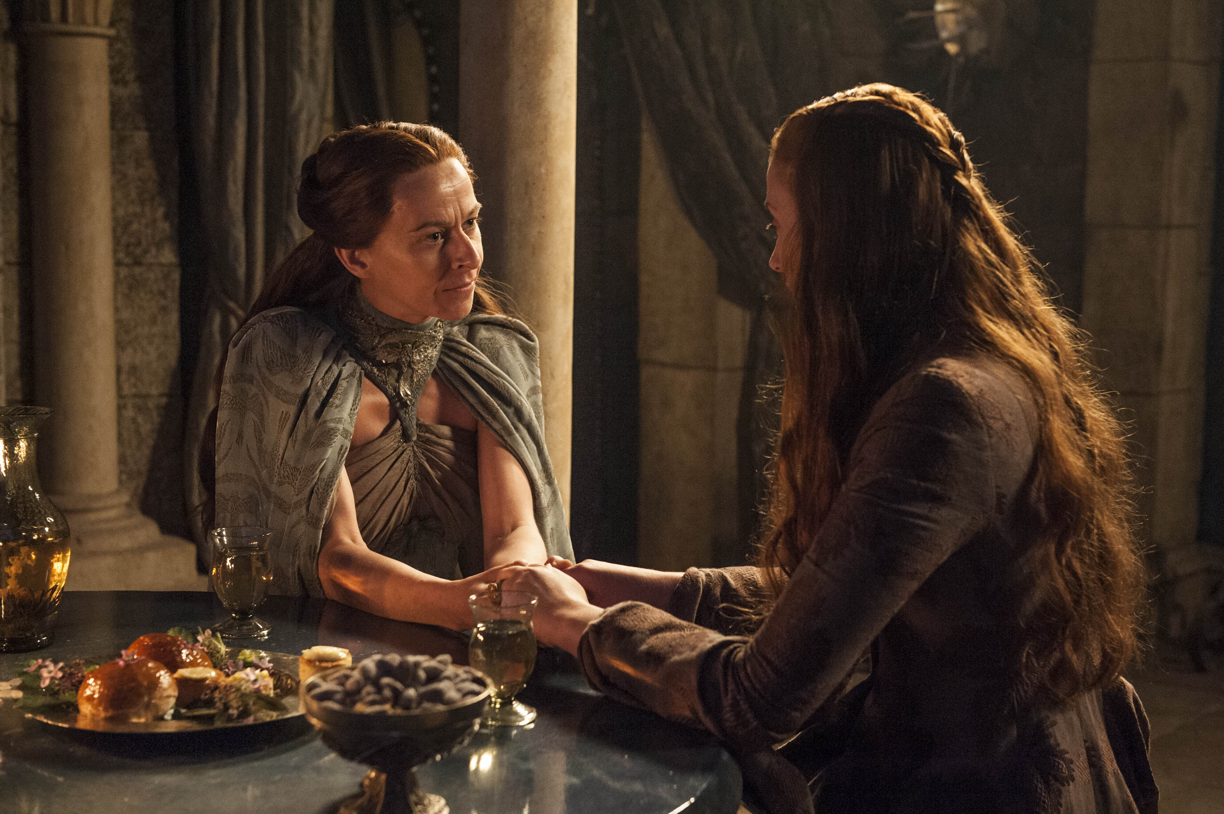 Intanto Lord Baelish porta Sansa “Einstein” Stark in incognito da zia Lysa. E qui succede la seguente cosa: lui prende tempo, ma lei ha una certa fretta di sposarlo e ci va giù proprio con delicatezza: praticamente lo ricatta ricordandogli che non erano stati i Lannister ad ucciderle il marito Jon Arryn, primo cavaliere del re, ma lei stessa su ordine di Baelish, salvo poi scrivere alla sorella Catelyn accusando i signori di Castel Granito.