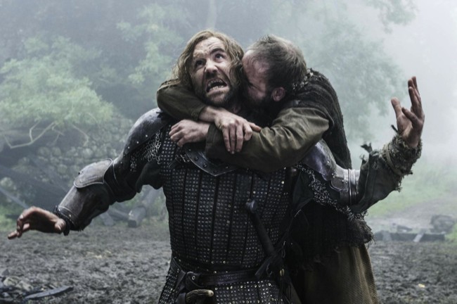 Arya e Il Mastino. I due incontrano un vecchio ferito, col quale Arya si scopre filosofa (“niente può essere peggiore di qualcosa che non esiste,il nulla è solo il nulla) mentre il Mastino unisce l’utile al dilettevole: lo uccide, ponendo fine alle sue sofferenze, e dà lezioni di anatomia alla piccola Stark (“vedi? lì c’è il cuore”).