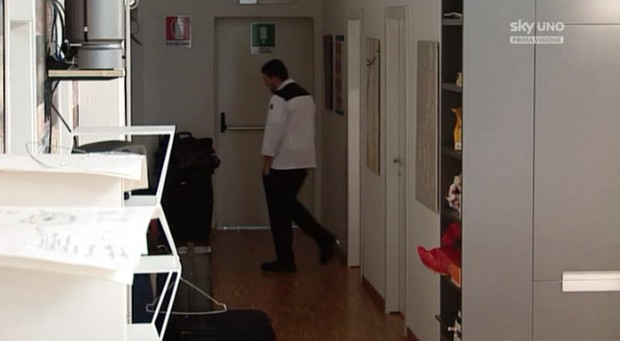 Si torna in cucina e Carmelo è allegro (“unisco l’umido al dilettevole”) finché non si affetta un dito preparando la linea. Ci vogliono due punti. Cracco annuncia la presenza di un ospite misterioso , il suo “primo maestro”, e tutti (soprattutto Sybil che si esalta da morire) credono che sia Gualtiero Marchesi. La nonchalance con cui Cracco chiama la “comanda ospite misterioso” fa ridere i polli.