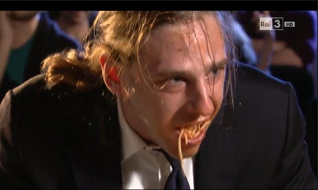 E mentre Fo e Strabioli ripercorrono per 45 minuti la straordinaria carriera dell’artista di Sangiano, gli studenti di recitazione ci offrono qualche assaggio. Luigi Biava, ad esempio, ci ripropone “La Fame dello Zanni” davanti ad un piatto di spaghetti, mentre Federico Benvenuto e Francesco Iaia ripropongono “Il Primo Miracolo di Gesù Bambino“.