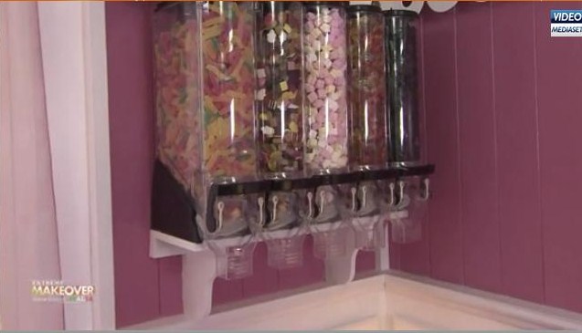 Insomma la casa è bellissima, tutta rosa shocking da far girare la testa, coi distributori di caramelle in camera dei bambini, un negozio di smalti nella stanza della sorella, e le casseforti a forma di cuore. Tutto all’insegna della sobrietà e dell’eleganza, insomma.