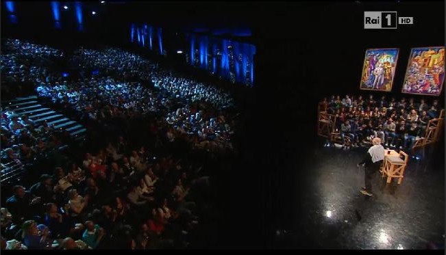 Così come ha risposto il pubblico in sala, che non ha mai smesso di ridere e di applaudire uno dei più grandi geni del ‘900 italiano, un monumento vivente che in qualunque Paese sarebbe chiamato a svolgere incarichi pubblici nei settori della cultura o dell’arte, mentre in Italia ci tocca ancora leggere le banalità di chi non ha nemmeno un cervello attrezzato per capirlo.