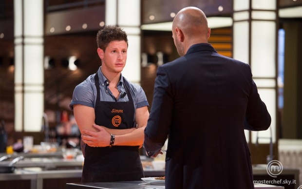 I concorrenti tornano in cucina per il pressure test, e Cracco ne approfitta per umiliarli un po’ e per sfottere Simone: “hai battuto un record, sei riuscito a far vincere la squadra in cui militava Amelia, non c’era mai riuscito nessuno”.