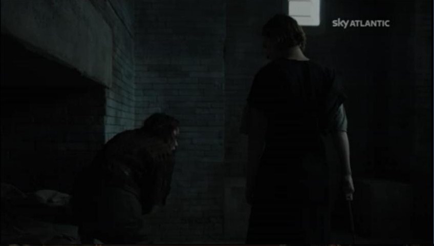 Si presenta con aria fintamente dolce, ma decisamente minacciosa. Margaery, però, ha ben presente il proprio potere e, per la prima volta, vediamo la Regina Madre in difficoltà, beccarsi, nell’ordine, dell’ubriacona e della vecchia (ti chiameremo presto Regina Nonna). Cersei schiuma come un pitbull, ma per ora incassa. La verità è che io me la farei nelle mutande solo solo se mi guardasse a quel modo.
