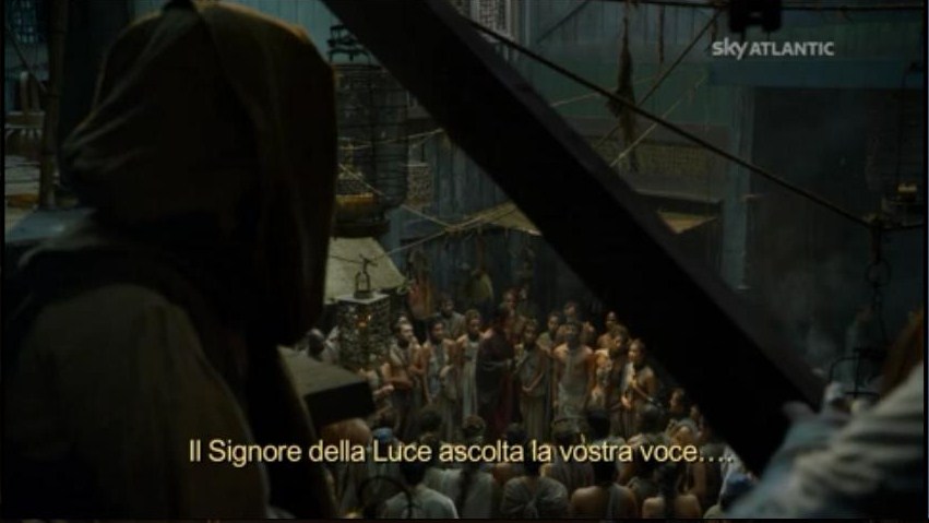 Intanto, ad Approdo del Re, succede qualcosa che non ti aspetti: mentre l’Alto Septon si trastulla con le mignotte di Lord Baelish, nel bordello arrivano i seguaci di Savonarola, tra cui il cugino scemo di Cersei, che lo spogliano e lo bastonano per strada.