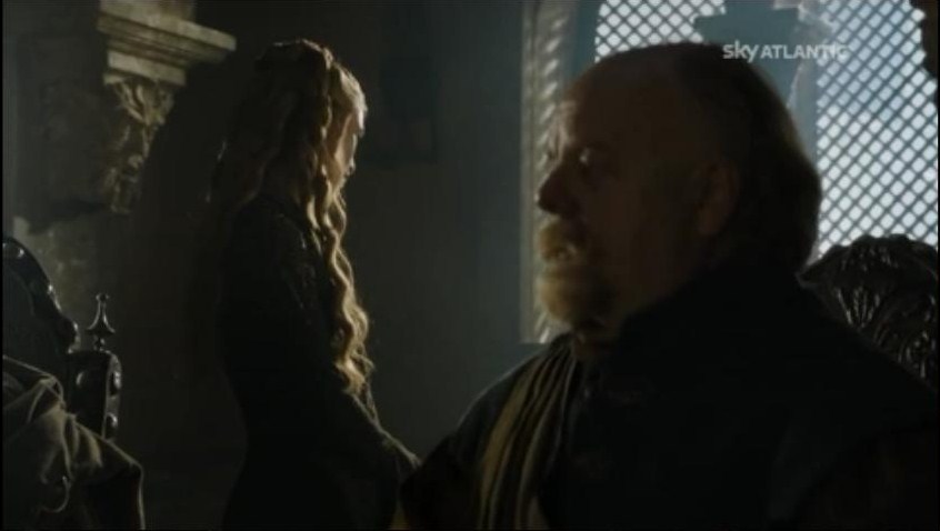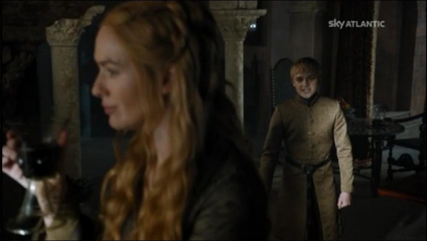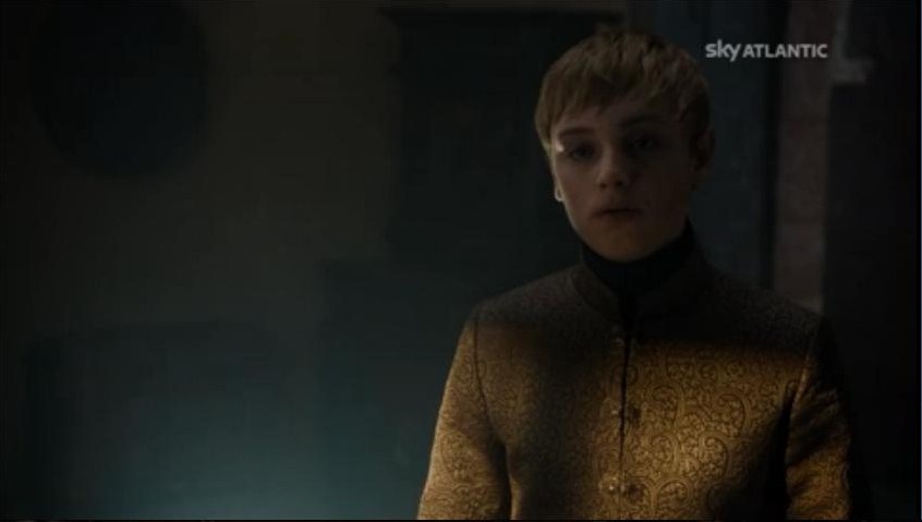 Dopo un accurato interrogatorio alla madre (“sei stata tu?” – “no” – “ah,ok”) decide di fare il re e andare al tempio a cantare “Passerotto devi andare via”. Ma il coraggio dura un attimo. I Passeri gli sbarrano la strada, i fanatici intorno iniziano ad insultarlo e lui opta per una ritirata strategica. Sono i momenti in cui rimpiango Joffrey. Che, magari, sarebbe scappato lo stesso, ma non prima di aver gridato “tagliategli la testaaa”.