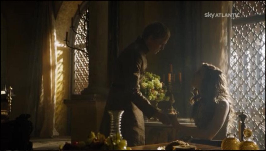 Tornato dalla moglie senza il fratello, ci prova: “non sono riuscito a prenderti il regalo che volevi, ma è il pensiero che conta! Però ti ho preso 200 paia di scarpe, qui c’è lo scontrino, se non ti piace il modello le puoi cambiare”. Risultato? Prima crisi coniugale, Margaery fa le valigie e torna dalla nonna.