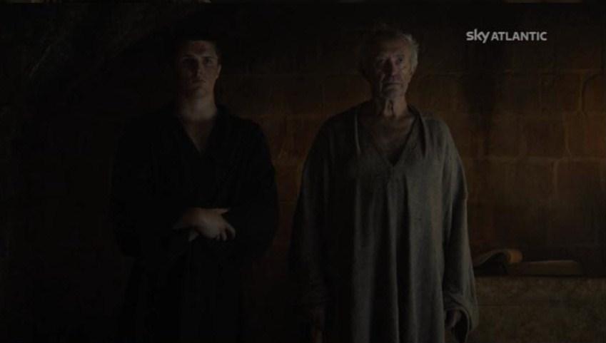 L’episodio, però, si apre al Castello Nero, con Jon Snow che parte per portare a termine la sua idea geniale: portare i nemici dei Corvi al di qua della barriera e organizzare tutti inseme un happy hour, tanto per farsi benvolere dagli amici, ché lui in queste cose è bravissimo! Ma non ho il tempo di ridere perché Maestro Aemon, l’ultimo dei Targaryen (forse!) nel continente occidentale, si spegne. Dopo aver urlato “Egg Egg” (che non vuol dire che vuole uova per colazione, ma è il diminuitivo del fratello Aegon) ci lascia con una frase davvero poetica: “Egg, ho sognato che ero vecchio”.